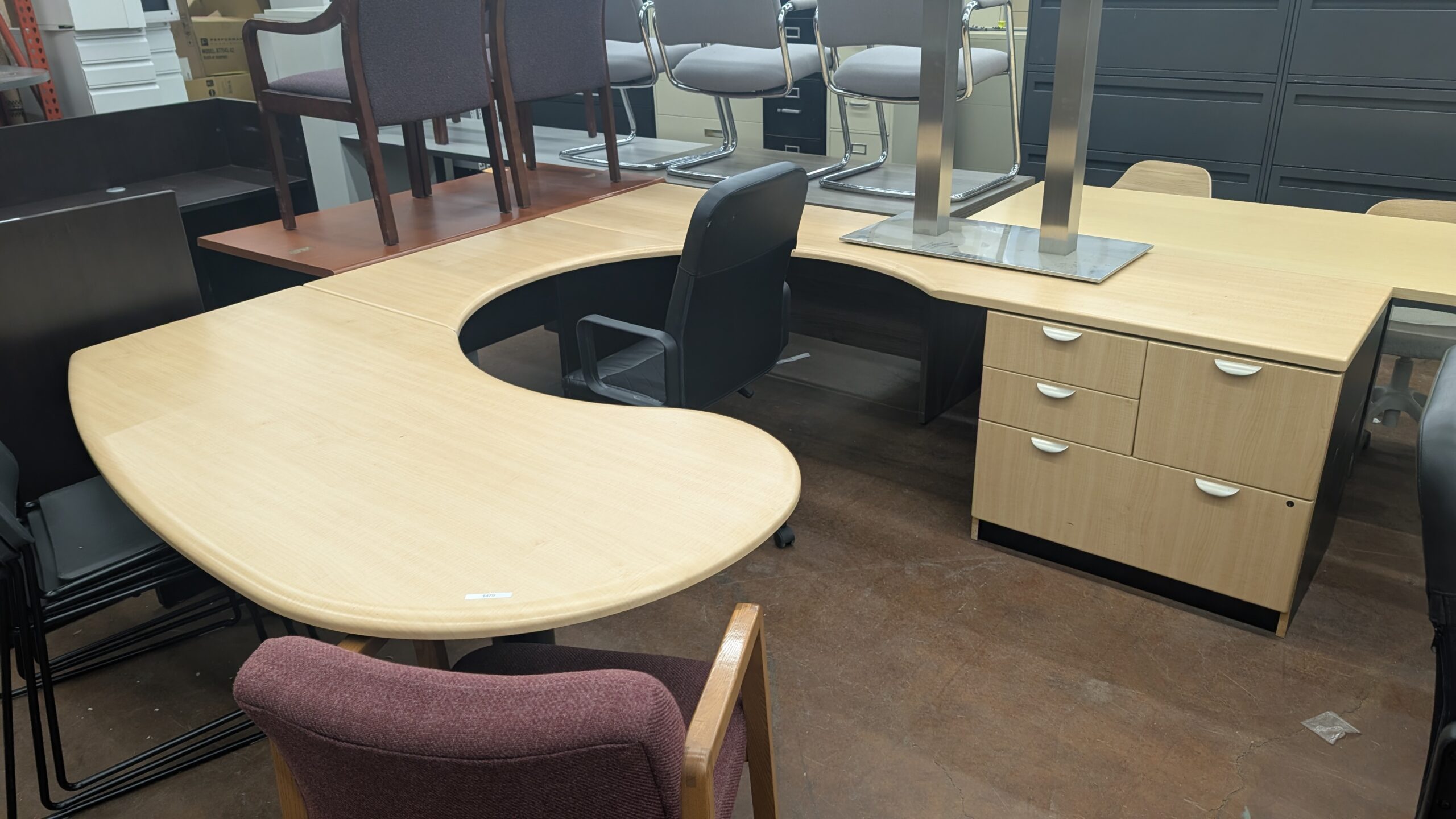 We have a constantly changing variety of used desks in our used showroom. Most are the Harmony brand that we sell new so it is easy to max and match new and used items.
